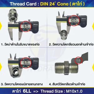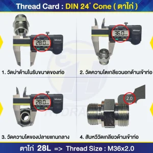 ตารางแสดงขนาดเกลียว สำหรับฟิตติ้งและข้อต่อมาตรฐานสากล ครอบคลุม JIC, SAE, NPTF, BSP, DIN และประเภทอื่...