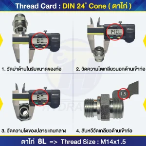 ตารางแสดงขนาดเกลียว สำหรับฟิตติ้งและข้อต่อมาตรฐานสากล ครอบคลุม JIC, SAE, NPTF, BSP, DIN และประเภทอื่...