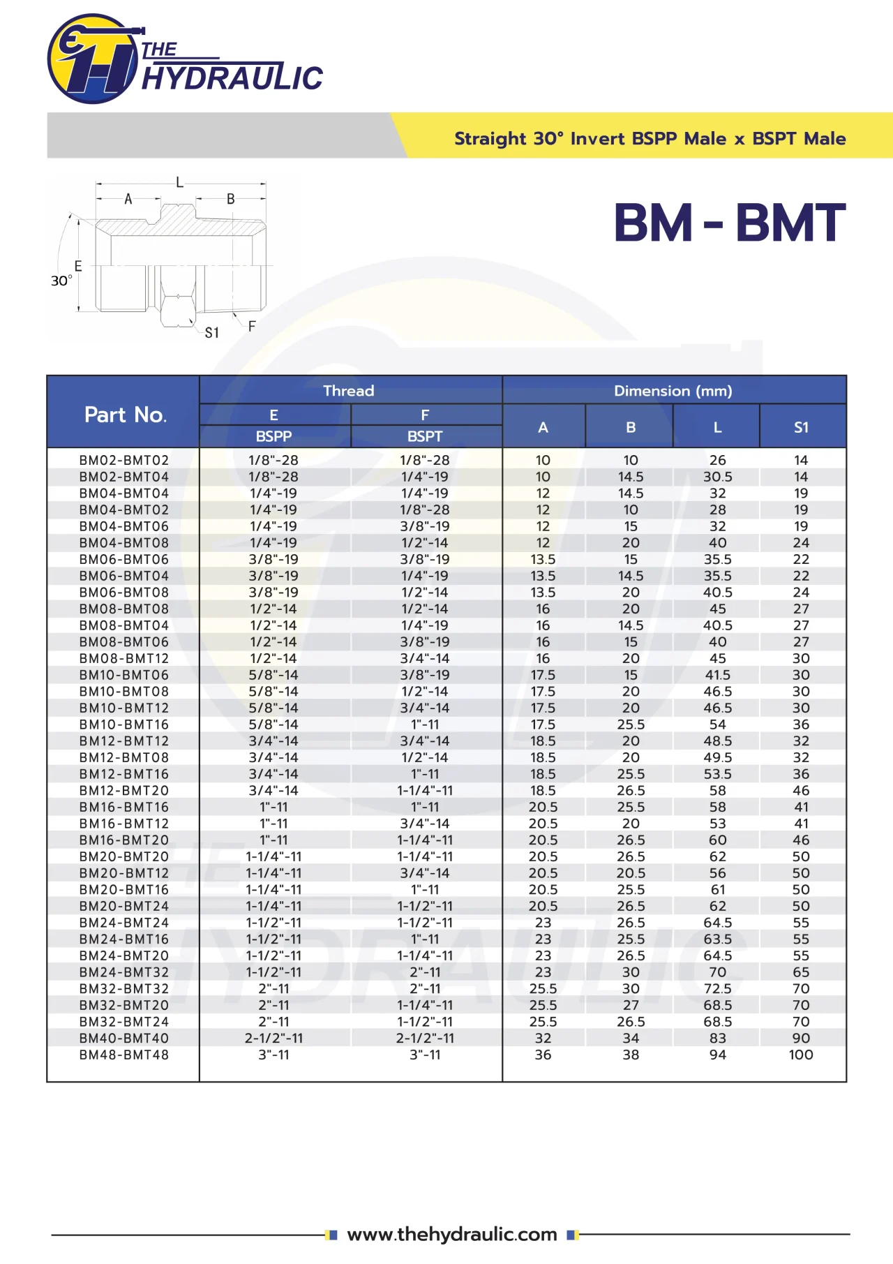 ประเภทเกลียว : 30° Invert BSPP Male × BSPT
