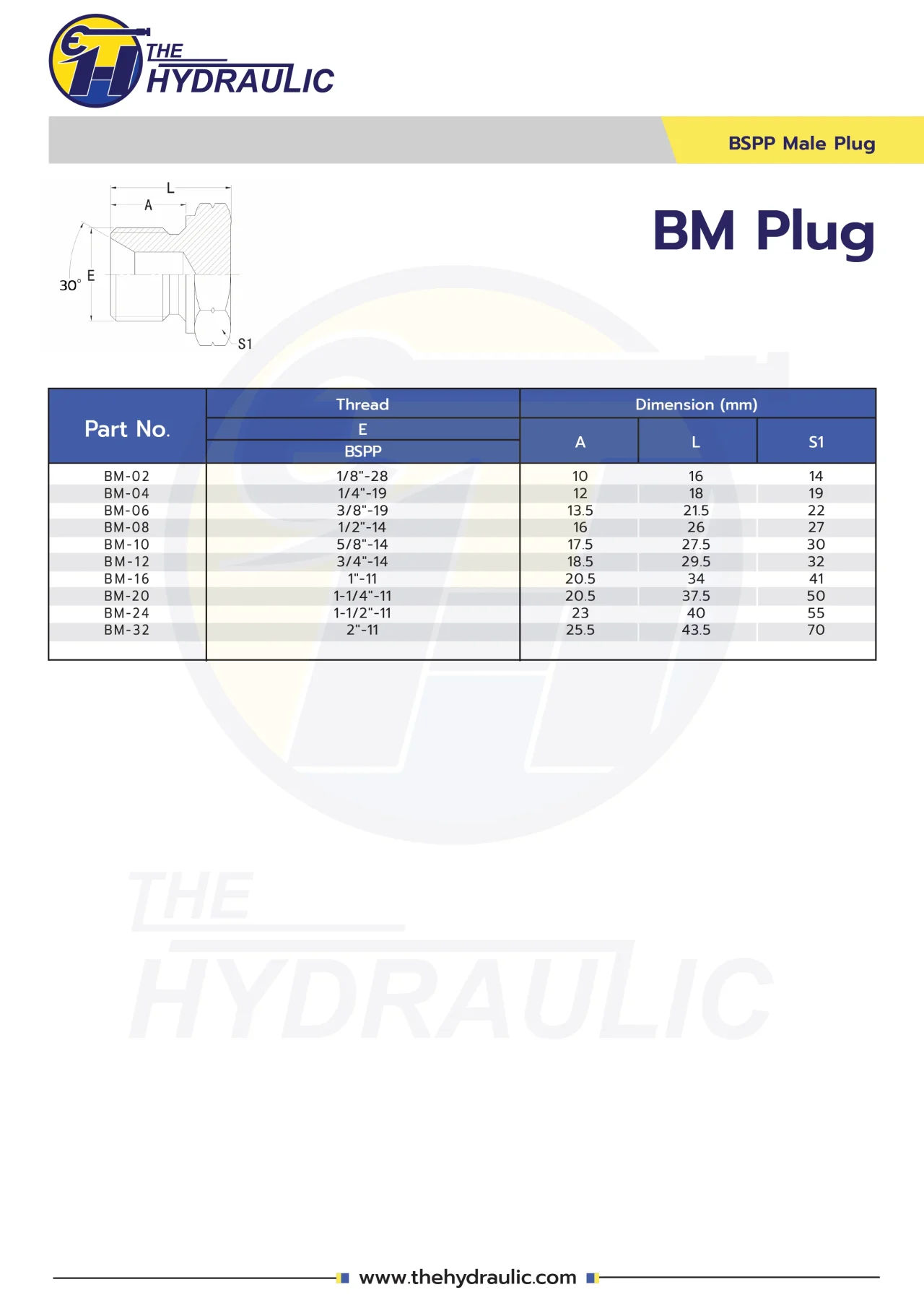 ประเภทเกลียว : 30° Invert BSPP
