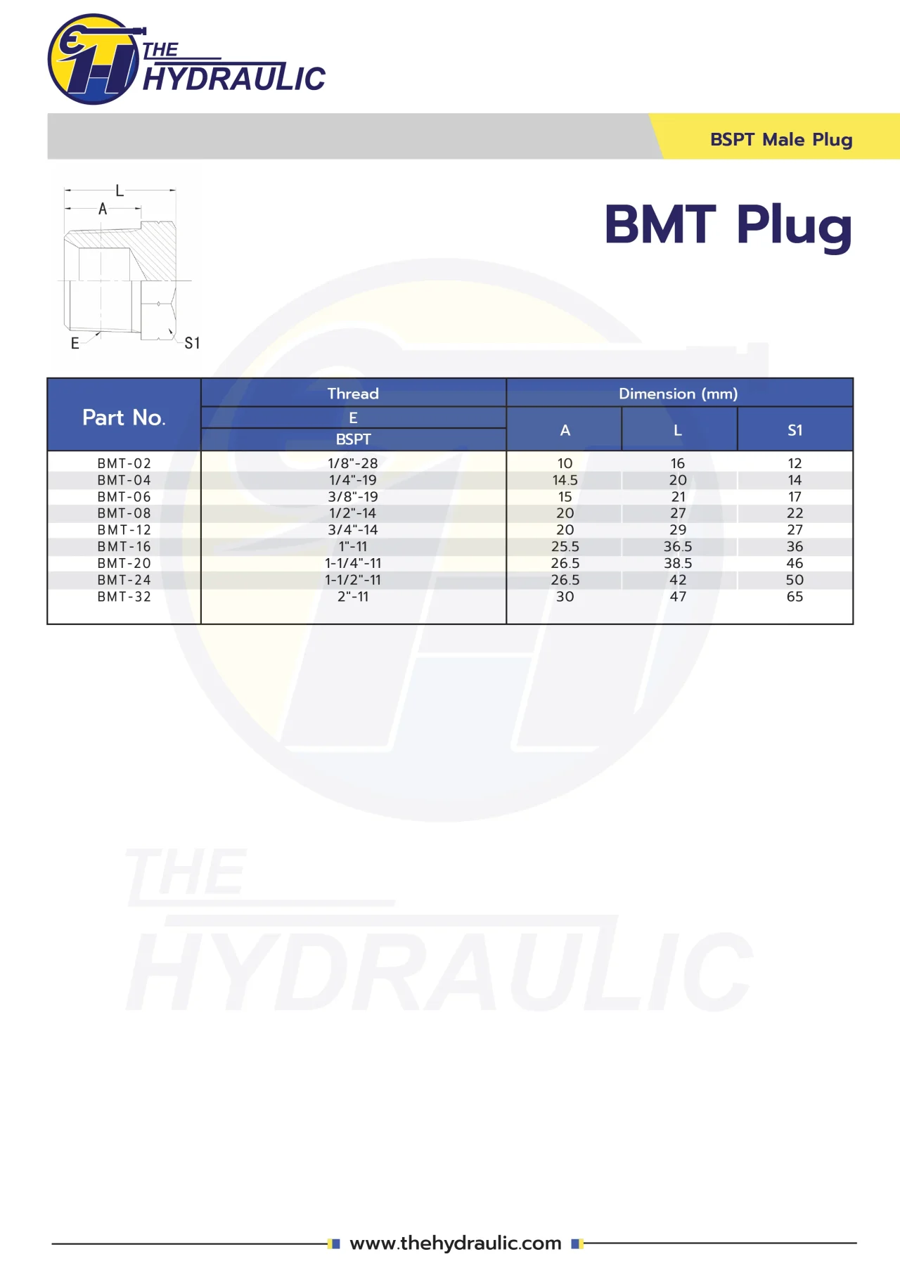 ประเภทเกลียว : เกลียวเทเปอร์ BSPT Male
