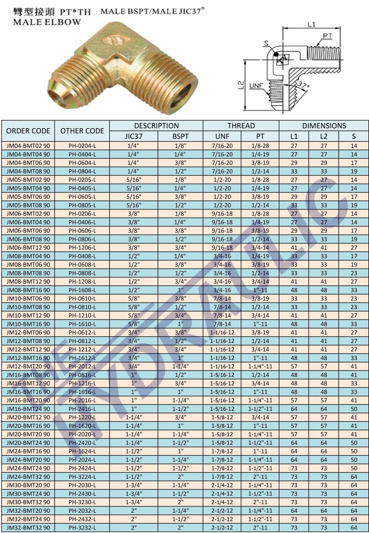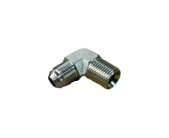JM04-BMT02 90 ข้อต่อไฮดรอลิคข้องอ 90° Male BSPT/Male JIC37° ขนาด 1/4″ x 1/8″ ผลิตจากเหล็กชุบ แข็งแรง ทนแรงดันสูง ป้องกันการรั่วซึม