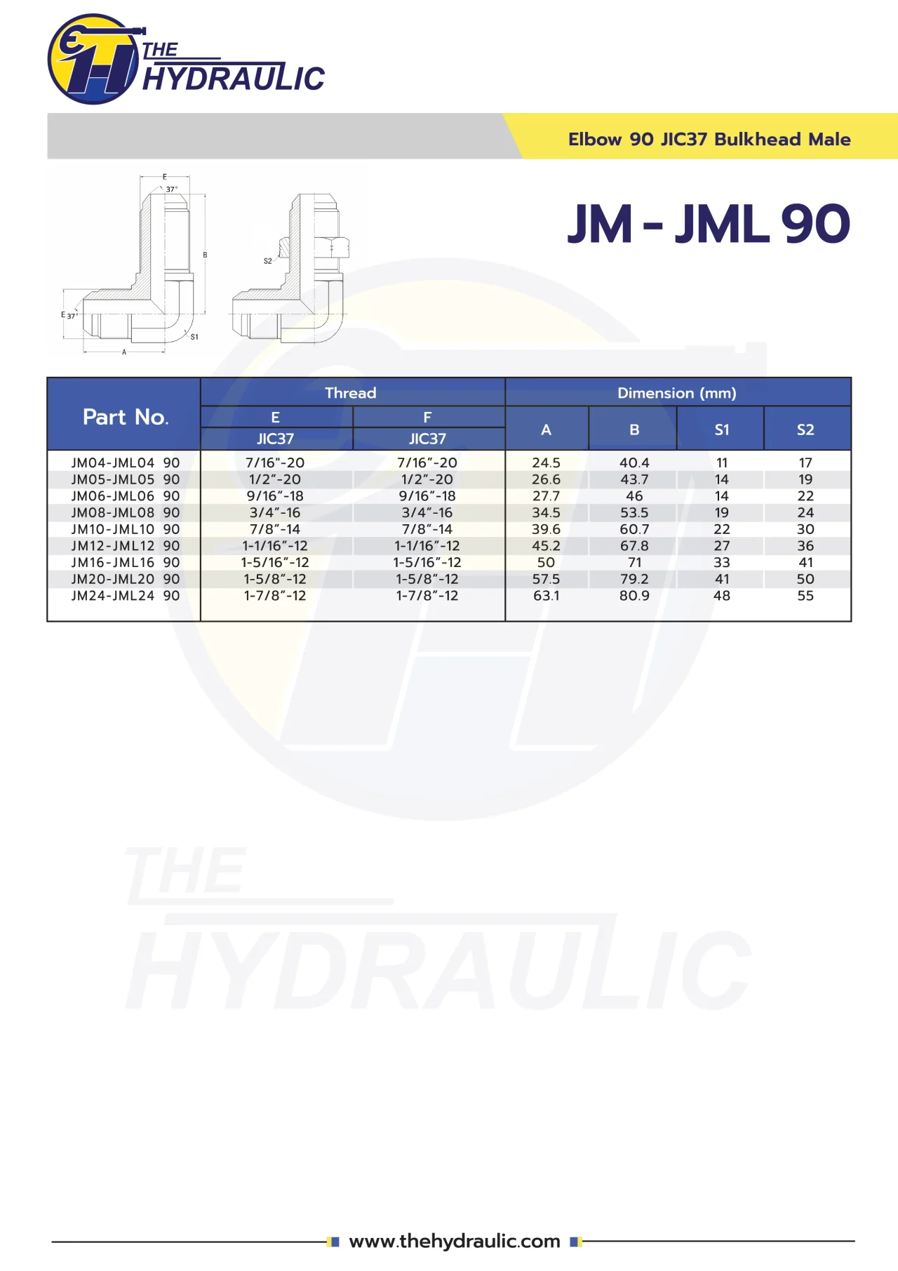 🧰ข้อต่องอ90  Bulkhead   JIC 37° – 5/8″