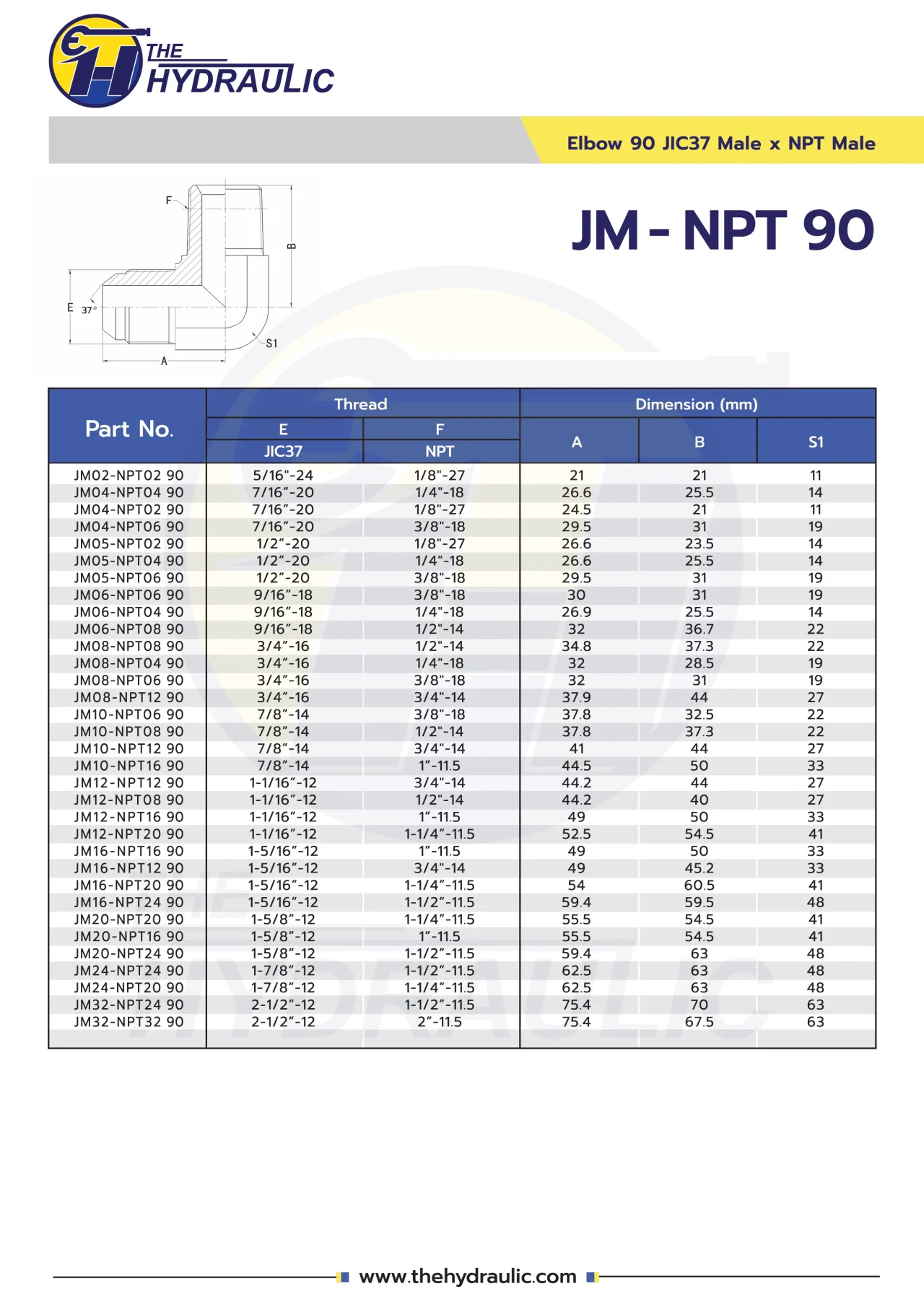 ข้อต่อไฮดรอลิค | เกลียว JIC37, เกลียว NPT |