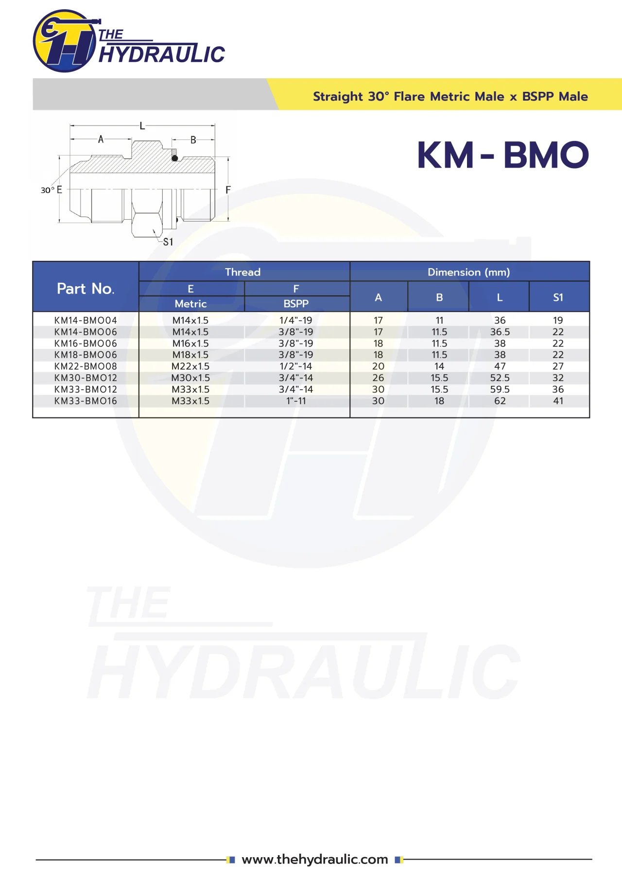 ประเภทเกลียว: Metric 30° Flare x BSPP (British Standard Parallel Pipe)