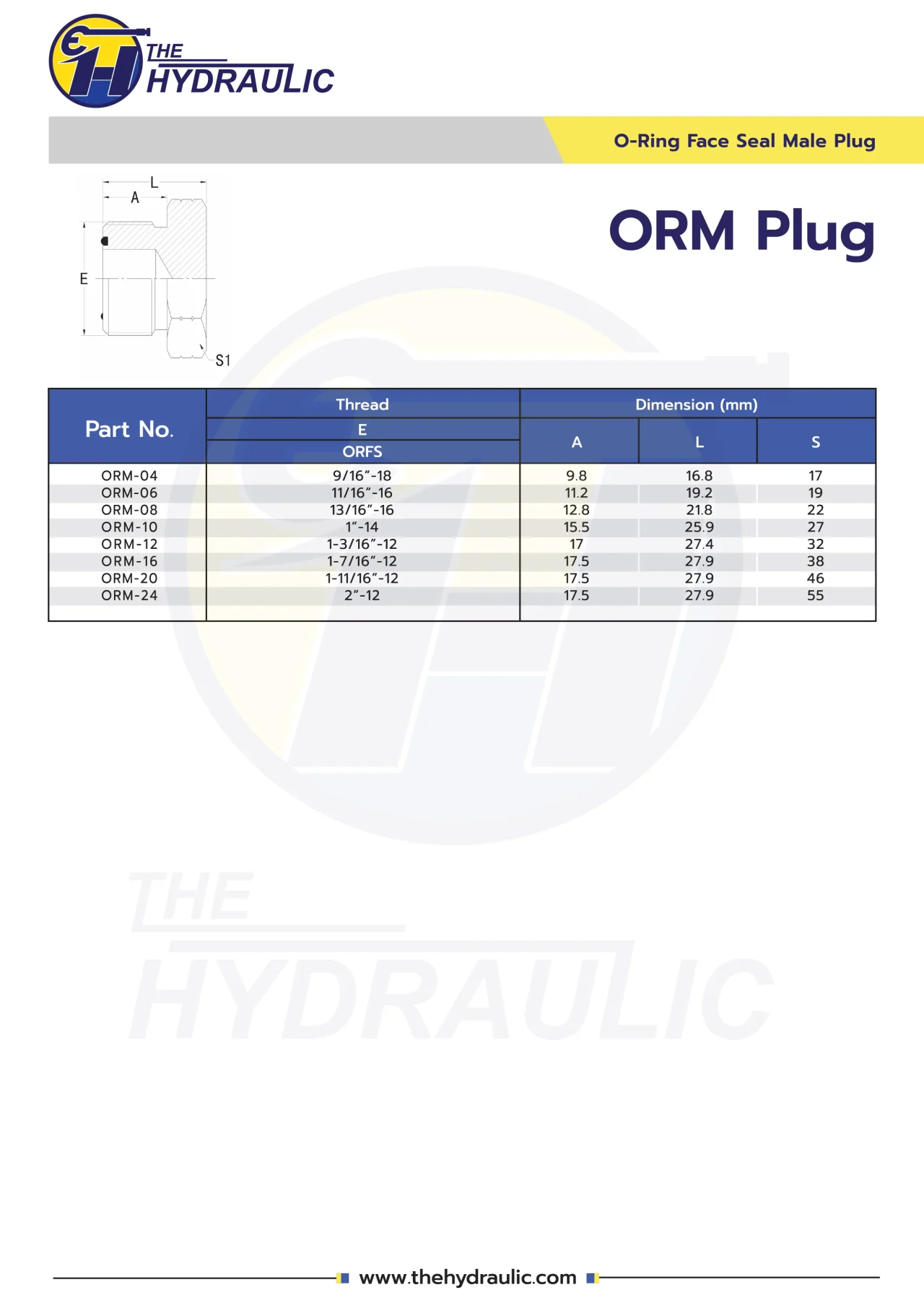 - ประเภทเกลียว: ORFS ตามมาตรฐาน SAE J1453