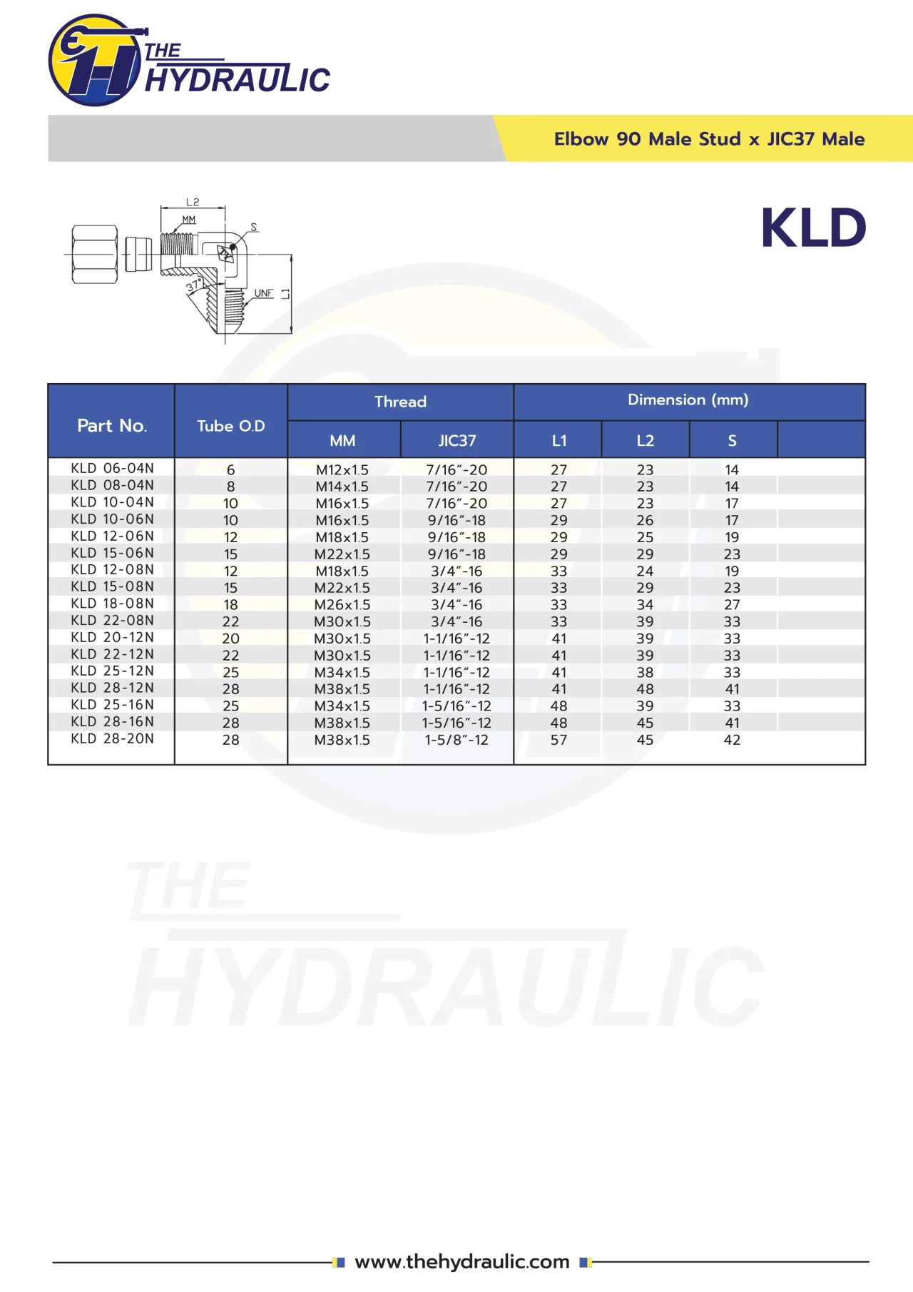 ข้องอ90 : เข้าท่อ 6 มิล (6L = M12x1.5) x JIC 37°-1/4″ (JM04)