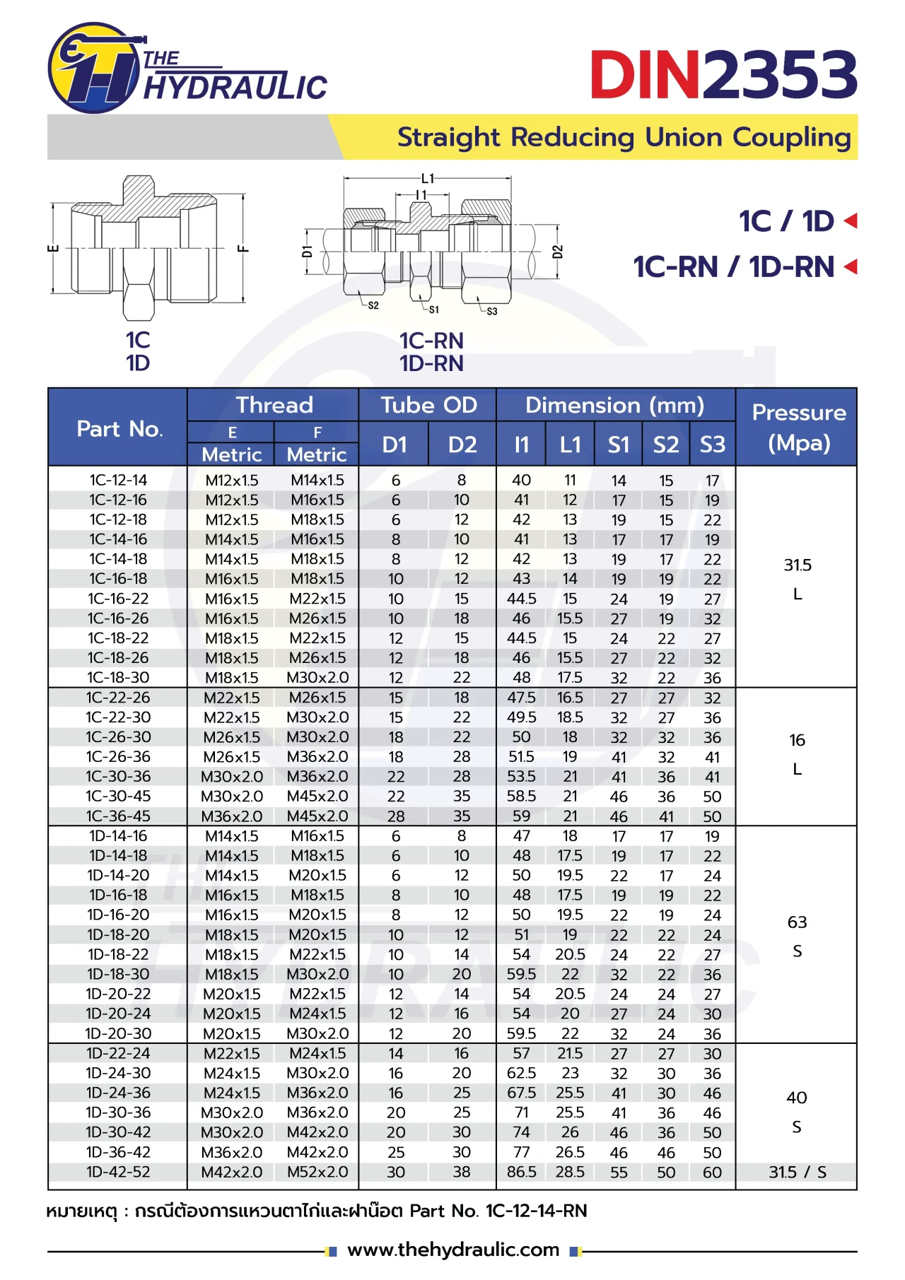 • ข้อต่อตรงตาไก่ 2 ข้าง (Male x Male) มาตรฐาน DIN 2353