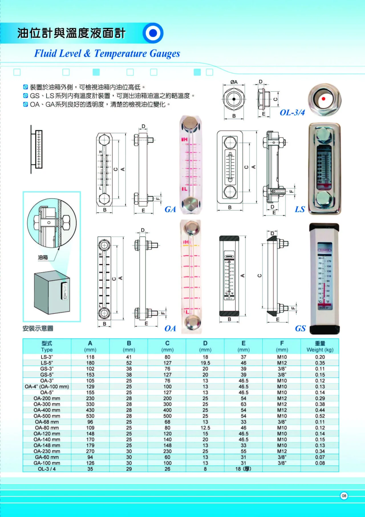 - รุ่น OA / GA Series: สำหรับแสดงระดับน้ำมันเท่านั้น (Level Gauge)